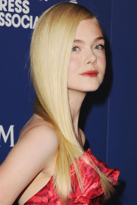 Perpaduan rambut blonde dan warna kulitnya yang putih membuat penampilan Elle Fanning semakin bersinar.