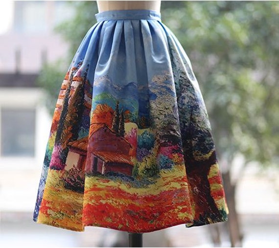 Yang biasanya lihat lukisan seperti kayak gini hanya di frame, tapi kali ini ada di rok klok wanita lho.