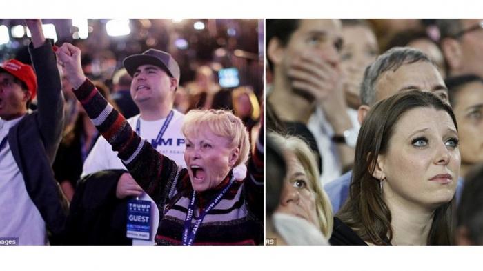 Foto-foto Perbedaan Ekpresi Pendukung Hillary Clinton dan Donald Trump