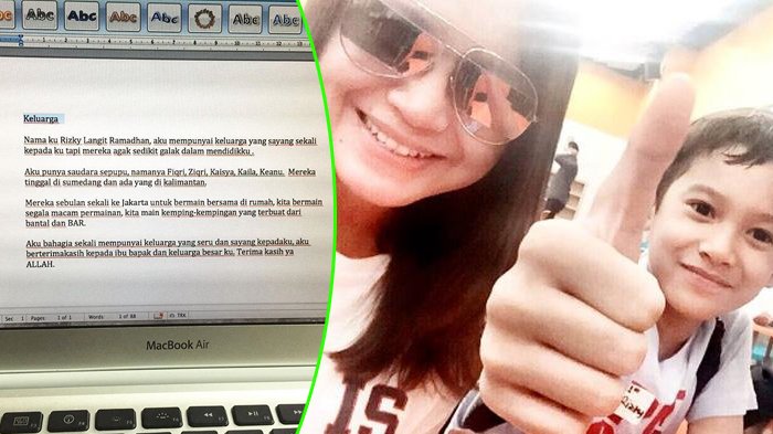Rizky Langit Ramadhan, anak laki-laki berusia 10 tahun ini bercerita tentang keluarganya lewat sebuah tulisan di laptop.