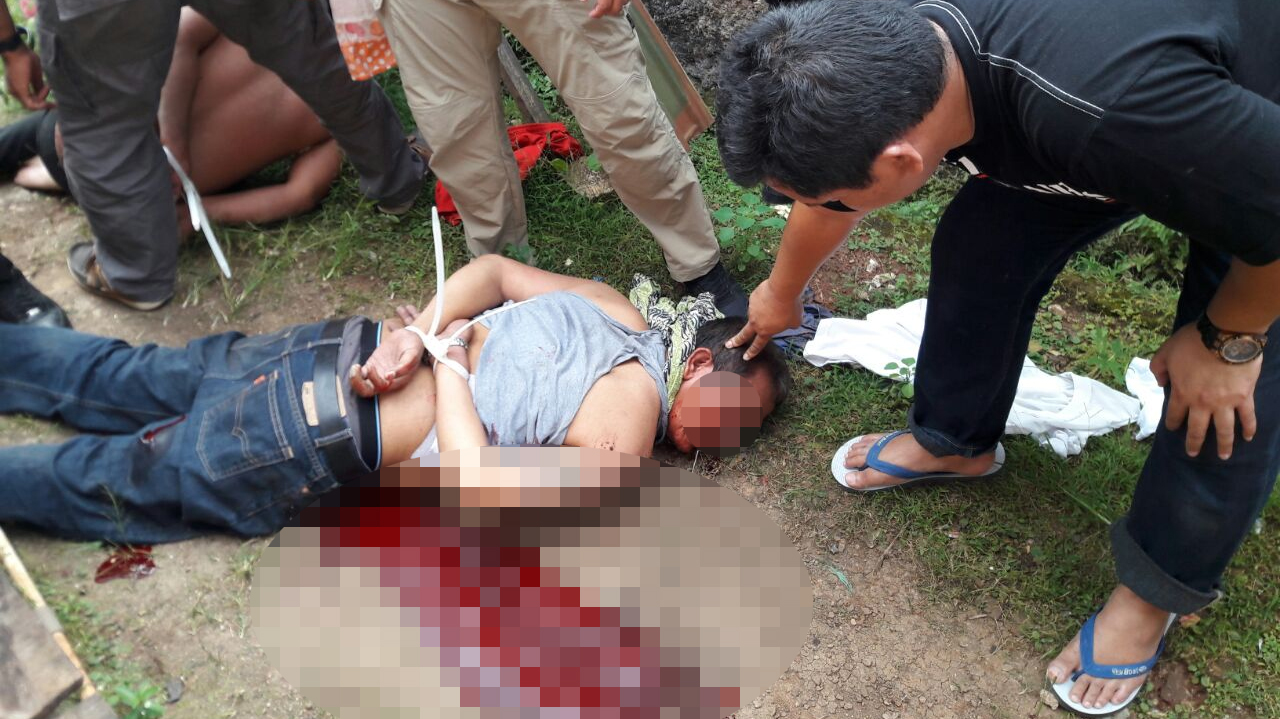 Mendengar ada rintihan di dalam kamar mandi, akhirnya polisi bersama warga mencoba membuka paksa pintu kamar mandi yang terkunci dari luar. Setelah pintu didobrak, polisi bersama warga di lokasi kejadian terkejut saat melihat isi di dalam kamar mandi.