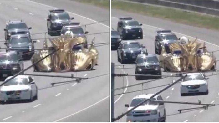 OMG! Mobil Berlapis Emas yang Dikawal Polisi Khusus Amerika Ini Diduga Milik Donald Trump