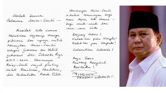 Jelang Debat, Prabowo Tulis Surat Instruksi Dukung Anies-Sandi Jika Mau Masa Depan Jakarta Begini