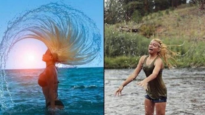 Pinginnya rambut kelihatan terbang semua ketika dihempaskan.