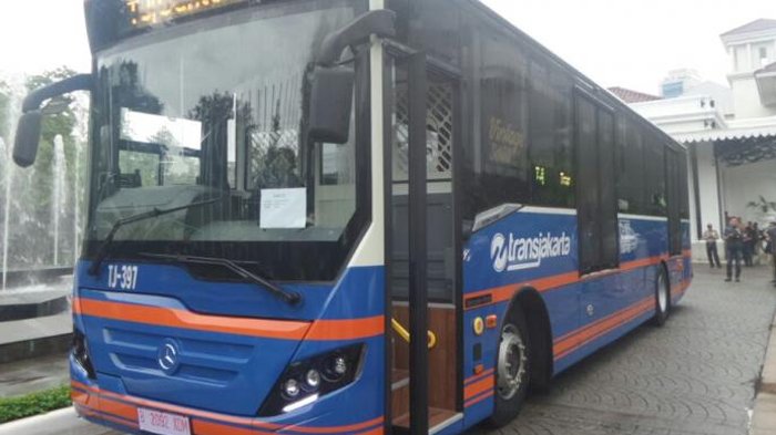 Dia menaiki bus tersebut dalam perjalanannya menuju Balai Kota DKI Jakarta.