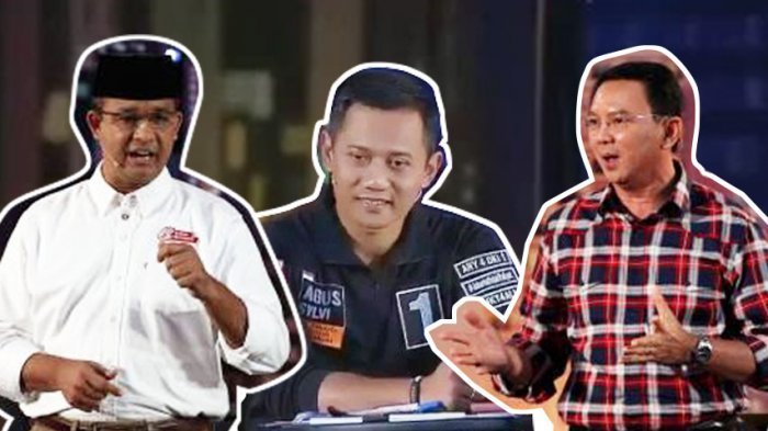 Agus Harimurti Yudhoyono - Sylviana Murni (paslon nomor urut 1), Basuki Tjahaja Purnama - Djarot Saiful Hidayat (paslon nomor urut 2) dan Anies Rasyid Baswedan - Sandiaga Salahuddin Uno (paslon nomor urut 3).