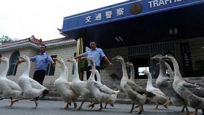 Di daerah tertentu dari negara ini, polisi China menggunakan angsa sebagai alternatif untuk anjing.