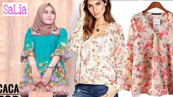 Baju blouse dengan motif floral ragam warna serta modelnya pun menarik banget.