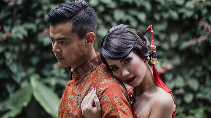 Dengan nuansa batik merah marun, baik Dion dan Fiona nampak sangat serasi.