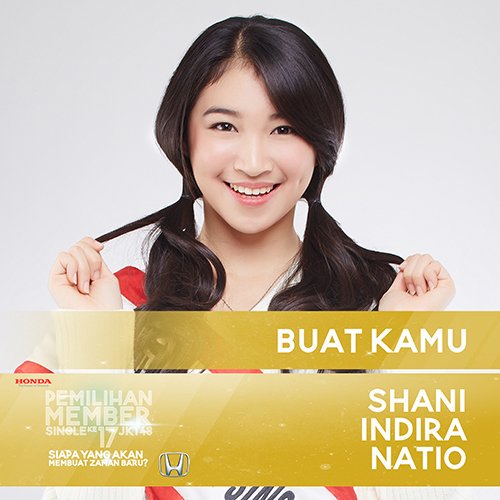 Shani Indira Natio dari team KIII yang berhasil merebut posisi center senbatsu dengan perolehan poin, 47717.