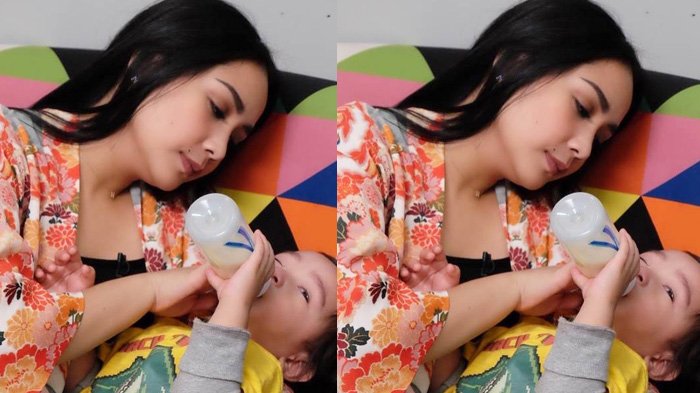Gigi tampak sibuk menggendong atau memangku Rafatar yang sedang nangis sambil membawa botol susu.