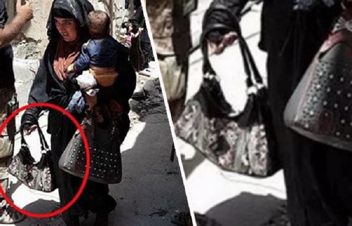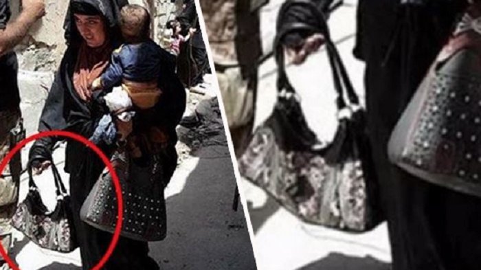 Pada tampilan pertama, wanita tersebut tampaknya melarikan diri dari kota Mosul Irak, yang kini kabarnya tidak lagi berada di bawah kendali ISIS.
