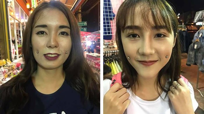 Melainkan dengan cara tindik, beberapa wanita Asia tampak melakukan tindik pipi untuk mendapatkan lekukan di bagian wajahnya tersebut.