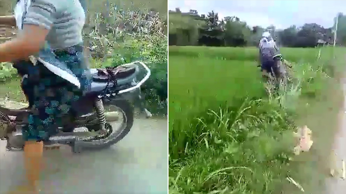 Tiba-tiba saja motor yang dia tunggangi terperosok ke sawah.