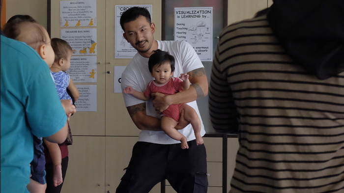Aktor berusia 30 tahun ini bahkan tak segan berada di tengah-tengah ibu-ibu untuk menemani Salma mengikuti kelas baby gym.