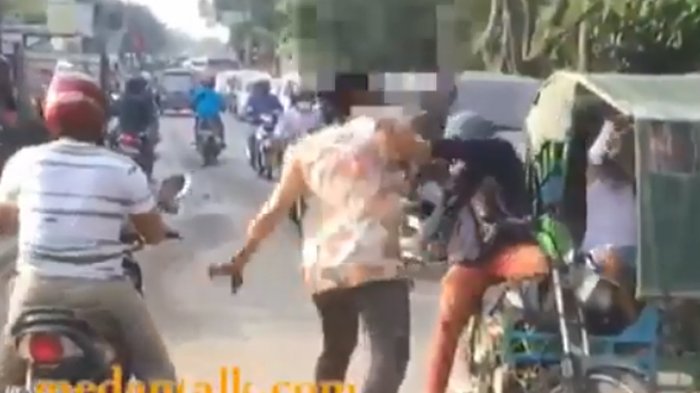 Emak-emak Ngamuk Setelah Gagal Nyalip dan Terjepit Becak Motor, Seorang Pria Ini Jadi Korban