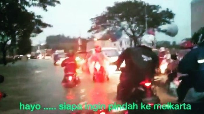Video itu memperlihatkan kondisi jalan yang terendam banjir setinggi lutut orang dewasa.