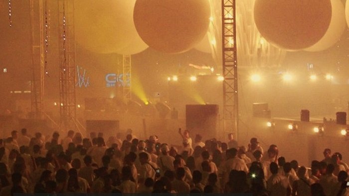 Sesuai dengan tema, para pengunjung yang datang malam itu wajib mengenakan pakaian putih sehingga seluruh area menjadi seperti lautan putih-putih.
