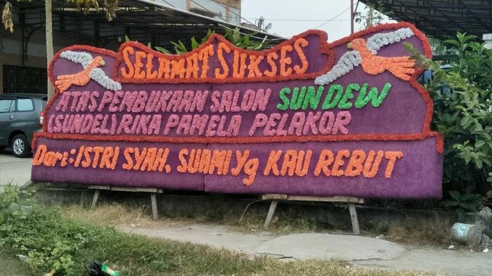 Sundew Rika Pamela Pelakor. Dari Istri syah yang suaminya kau rebut" tulis ucapan tersebut.