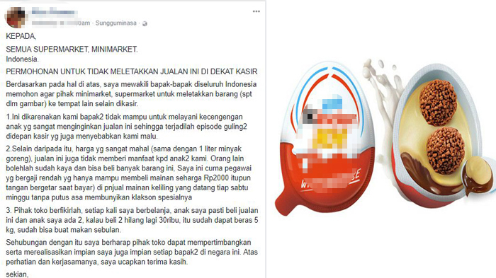 Ayah tulis curhatan minta semua supermarket dan minimarket di Indonesia untuk tak meletakkan jajanan Kind*r Joy di area kasir. Langsung jadi viral!