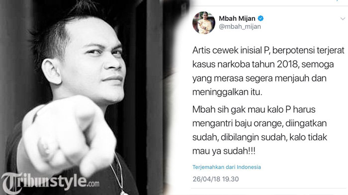 Lewat kicauannya, Mbah Mijan menuliskan kalau seorang artis perempuan berinisial P lah yang berpotensi terjerat narkoba di tahun 2018 ini.