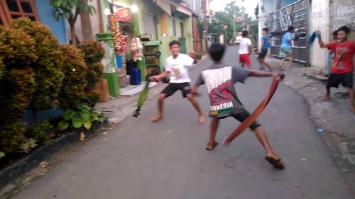 Meski begitu keesokan harinya semua kembali bermain perang sarung.
