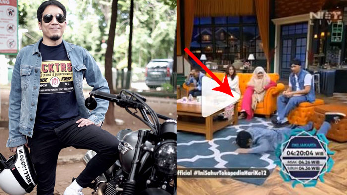 Saking lelah dan mengantuk, Desta pun nyungsep saat saat membawakan program Ini Sahur secara live.
