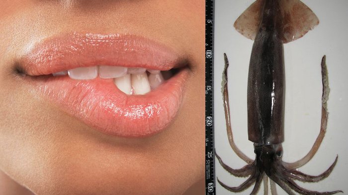 Lidah wanita itu 'diresapi' oleh cumi mentah, laporan medis mengklaim.
