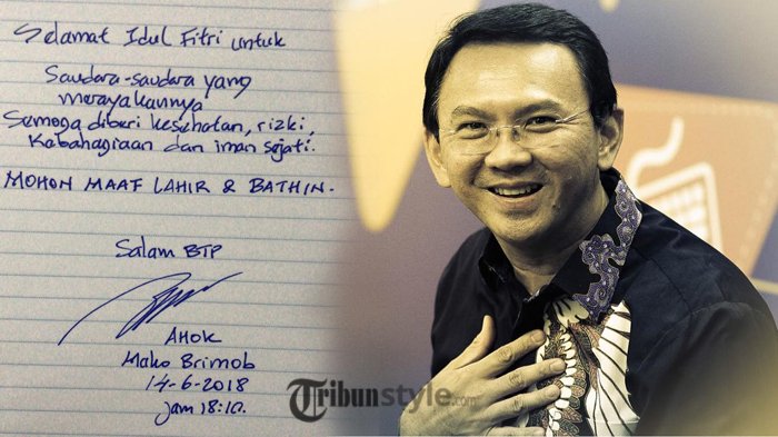 Masih Berada di Mako Brimob, Ahok Tulis Surat Ucapan Selamat Idul Fitri di Malam Takbiran
