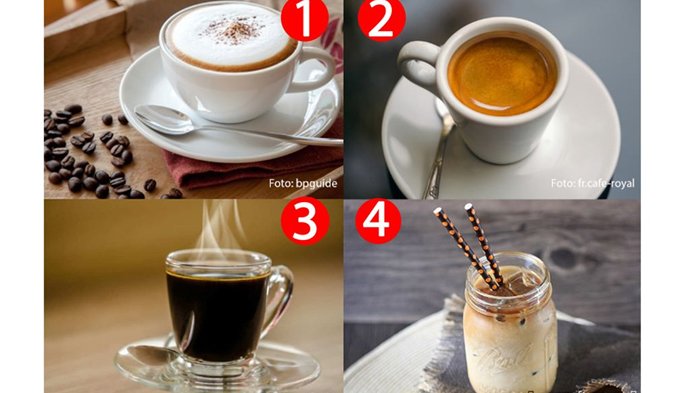 Kamu hanya perlu memilih antar kopi capuccino, expresso, kopi hitam, dan ice coffe berikut ini.