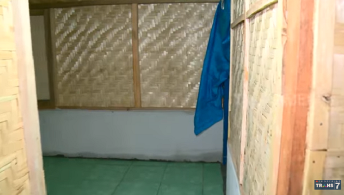Terbuat dari anyaman bambu sederhana dengan paduan pintu kayu, rumah ini dilengkapi dengan tikar sebagai alas tidur.