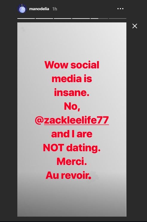 "Wow social media is insane. No, @zackleelife77 and i are NOT dating. Merci. Au revoir," tulis Manohara. (TribunStyle.com/Ika Bramasti).