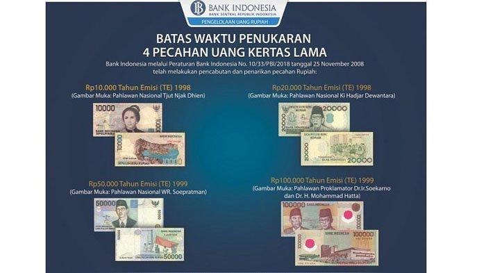 Bank Indonesia (BI) merilis daftar uang kertas yang ditarik dari peredaran pada akhir 2018.
