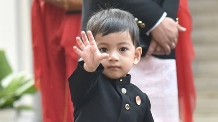 Cucu Presiden Jokowi, Jan Ethes kembali menyita perhatian publik, Ethes terlihat santai jawab pertanyaan awak media, 'Itu mbahnya Ethes'.