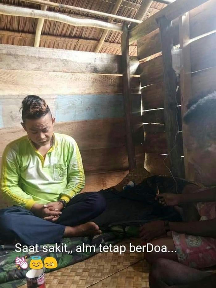 Kondisinya pun terlihat lemah namun tetap berusaha untuk duduk dan berdoa.