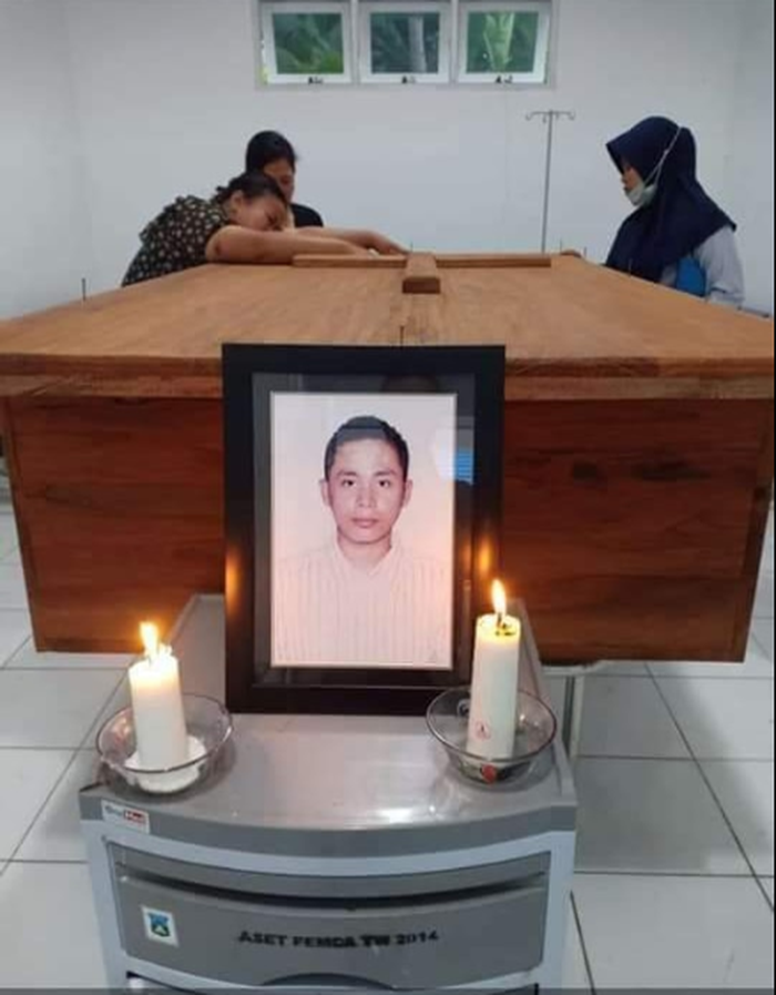 Jenazahnya pun dibungkus menggunakan sarung dan dibiarkan terbaring di atas tikar sembari menunggu helikopter yang menjemputnya.