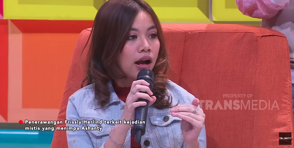 "Frissly, ini giliran Ashanty yang dirumahnya mendapatkan hal-hal seperti itu (teror mistis), apa yang kamu lihat?" tanya Uya.