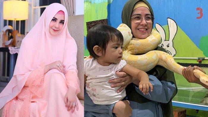 Risty Tagor yang memakai hijab itu tak sadar jika bros leher yang ia gunakan membuat ular merasa tak nyaman.