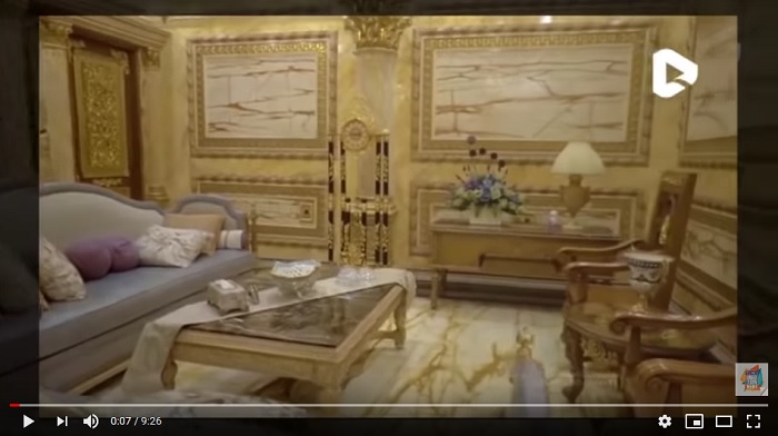 Interior rumah yang berwarna kuning keemasan ternyata memang dilapisi oleh emas.