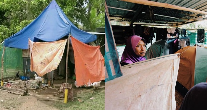 Dari foto-foto yang beredar, Radzuan dan keluarganya hanya tinggal di bangunan semi permanen yang terletak di sebuah lahan kosong.