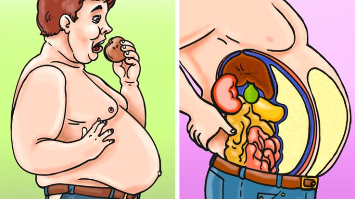 Lemak visceral, aktif, dan perut semuanya disimpan di sekitar hati, pankreas, dan usus.