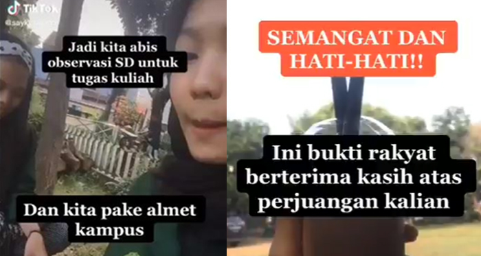 Viral video mahasiswa dapat minuman gratis dari bapak penjaga portal komplek lantaran dikira ikut aksi demo tolak UU Cipta Kerja.