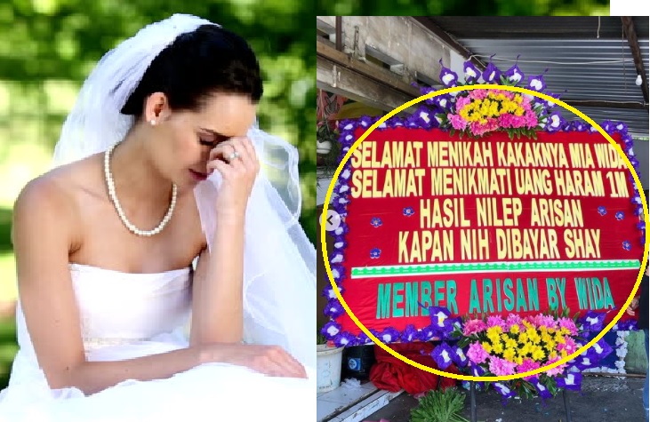 Bagaimana tidak, karangan bunga itu bertuliskan 'Selamat Menikah Kakaknya Mia Wida, Selamat Menikmati Uang Haram 1 M Hasil Nilep Arisan, Kapan Nih Dibayar Shay. Member Arisan By Wida'.