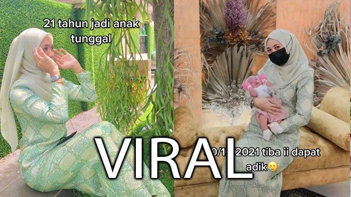 "21 tahun jadi anak tunggal...tiba-tiba dapat adik," tulisnya di video tersebut.