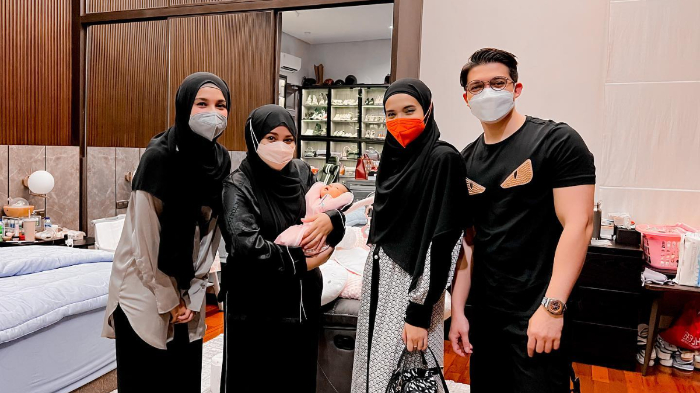 Setelah paras cantik serta nama lengkapnya diumumkan, baby Ameena mulai dijenguk para rekan artis dari kedua orangtuanya.