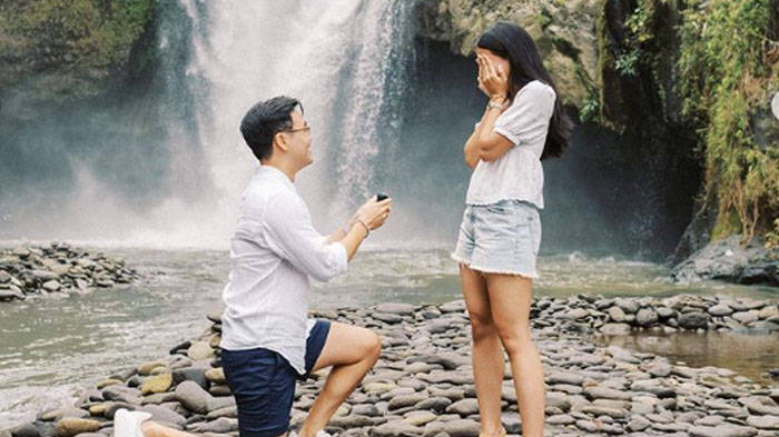Inilah momen manis Jesse Choi saat melamar Maudy Ayunda di depan air terjun. Manis banget!