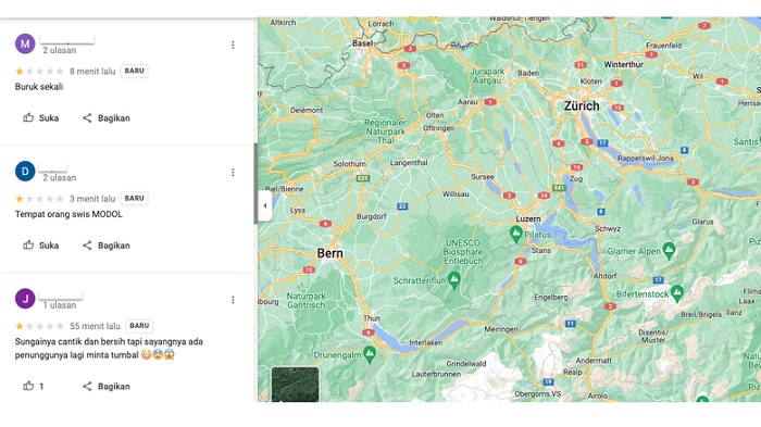 Viral di Twitter dan aplikasi Google Maps ulasan warganet Indonesia tentang Sungai Aare, Swiss.