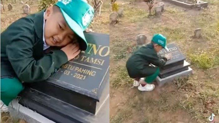 Viral video bocah pagi-pagi ke makam ayahnya untuk berpamitan berangkat ke sekolah.