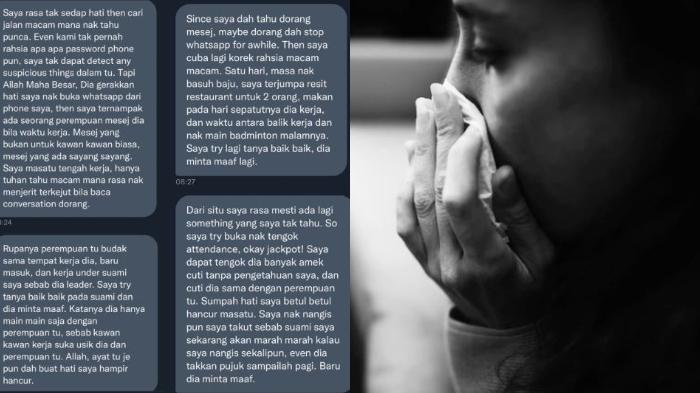 Seorang istri syok hingga tahan tangis dapati perselingkuhan suaminya dengan teman sekantor. Ia mendapati suaminya ambil cuti untuk berselingkuh.