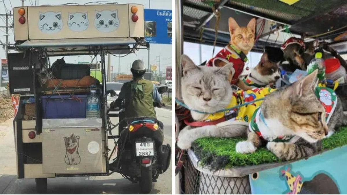 Menggemaskan, pria di Thailand bernama Samsen mudik ke kampung halaman bersama 11 kucingnya, tempuh jarak 300 km